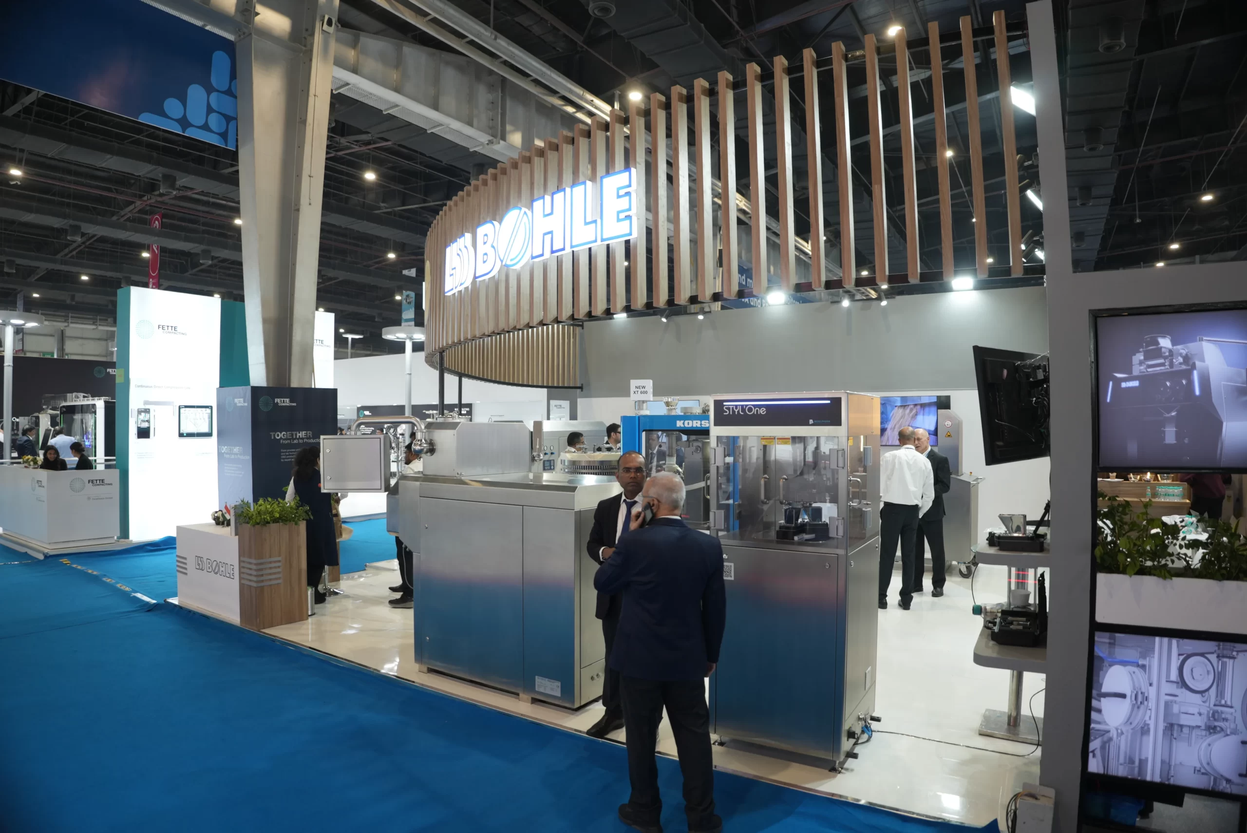 Century-long mastery in tablet compression meets forward-thinking innovation in solids processing. Together, they redefined pharma machinery exhibits—transforming precision and performance into a tactile design story. Through curated spatial narratives and interactive experiences, the space showcased a seamless blend of German engineering, legacy, and next-gen pharma technology.
