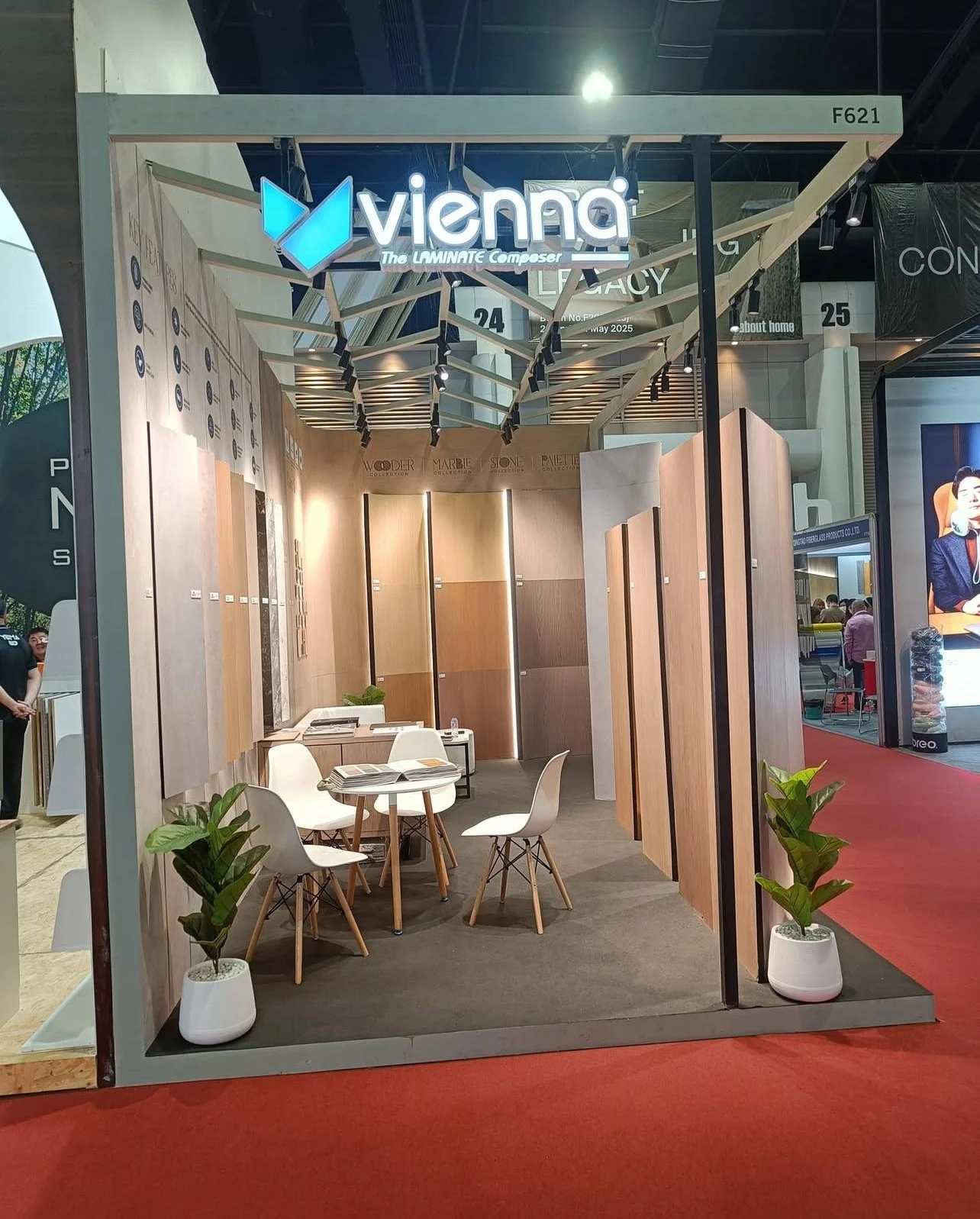 We will create an immersive laminate experience center featuring Vienna’s extensive design collections and technical innovations. Interactive product galleries will showcase wood grains, solid colors, and contemporary patterns across residential and commercial applications. Digital visualization stations will allow visitors to explore laminate applications in real-world settings. Technical consultation areas will highlight durability features, sustainability credentials, and installation solutions. The booth will emphasize elegance, versatility, and reliability, establishing Vienna Laminates as the preferred choice for discerning architects and designers.